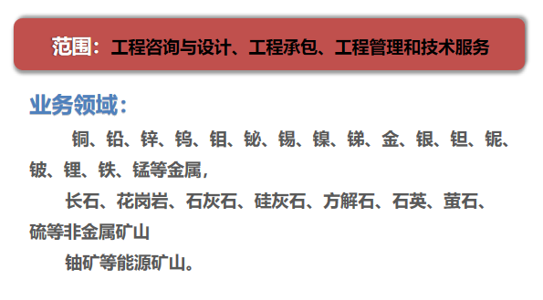 从事业务:工程咨询、工程设计、工程承包、工程管理和技术服务。